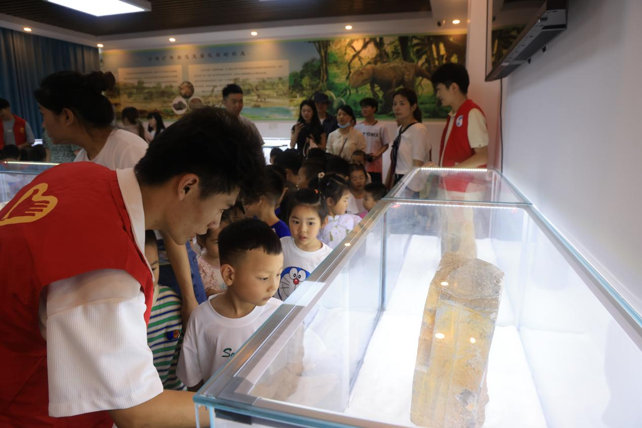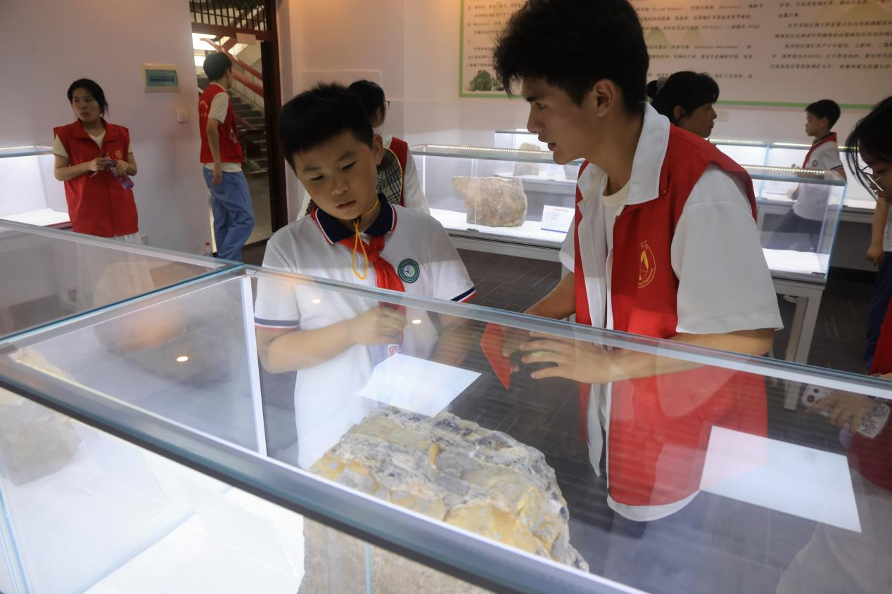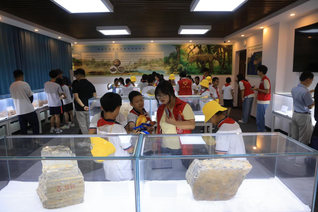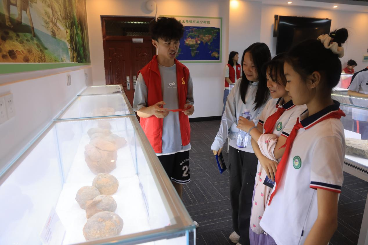 在随后的磷矿石与恐龙蛋展厅参观过程中,开采出的磷矿岩及伴生恐龙蛋化石真切地展现在孩子们眼前。其中,磷矿岩直观呈现了其在农业化工领域的重要作用,伴生的恐龙蛋化石则兼具科普价值与文化教育意义。孩子们在聆听讲解时,不仅深入了解了展品的实际意义,更深切感受到科学家精神的熏陶与正确价值观的启迪。