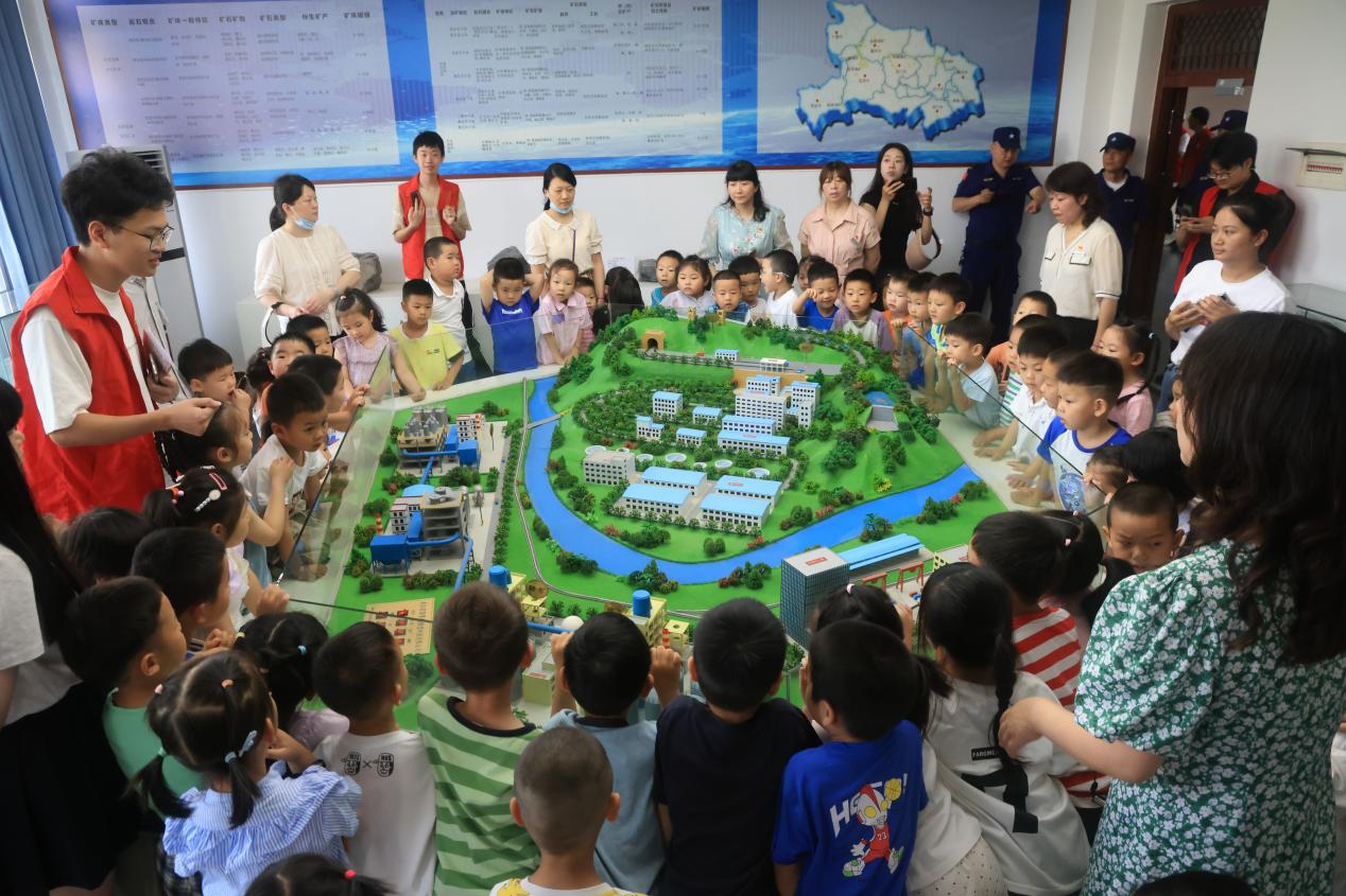 随后,在“红色矿业,绿色发展”社会实践团本研志愿者与工程大幼儿园教师的共同带领下,小朋友们走进湖北省社会科学普及基地,依次参观了中国磷矿石及绿色加工过程展厅、外国磷矿石及磷矿伴生恐龙蛋化石展厅、基础地质实验室。参观过程中,实践团讲解队队员通过生动讲解和趣味问答与小朋友们亲切互动,将理论知识与实物展示有机结合,让科学启蒙教育更加直观生动。