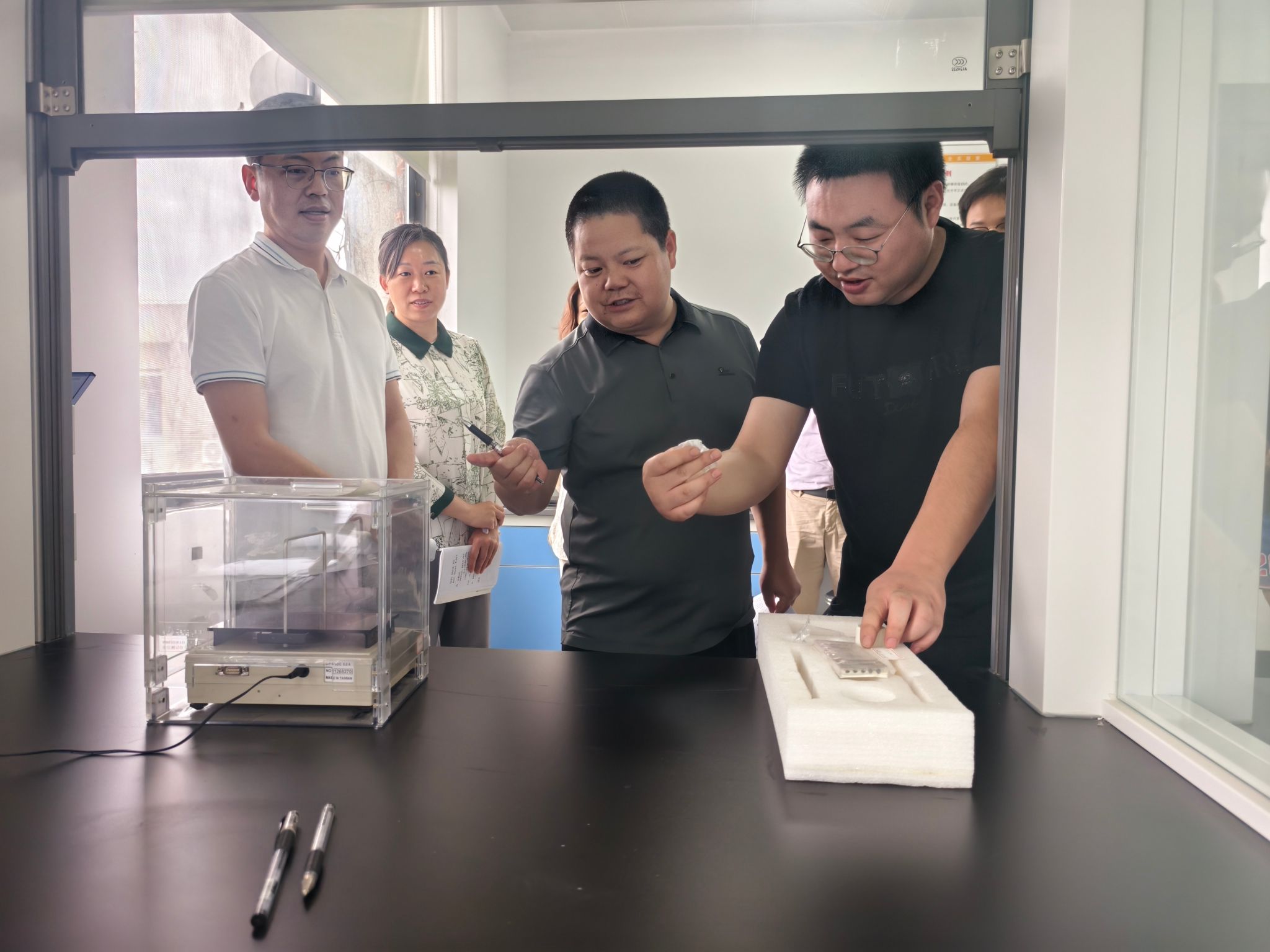 陈旭勇、骆效兵陪同专家组检查了实验室的仪器设备、检测合同和工作环境。专家组组长对实验室的质量手册、程序文件及报告清单进行了全面检查,对申报项目的检测标准、设备校准、操作流程等方面进行了全方位点评和交流。随后,专家组对实验室的管理人员进行了面对面的考核,对实验室部分有关问题提出了整改建议。实验室负责人何东升表态发言,感谢专家组的宝贵意见和建议,并表示后续将不断改进和完善。