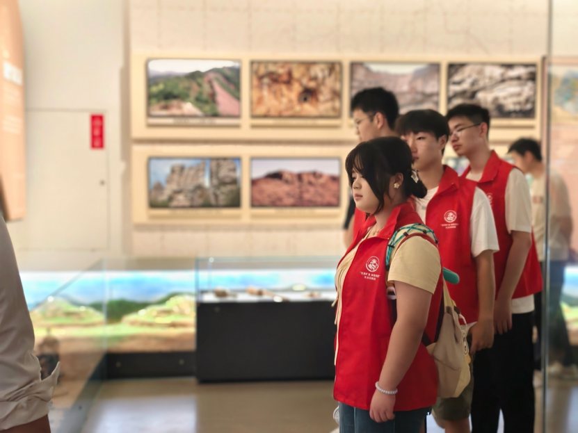 接下来,实践团队伍继续前往具有深厚历史文化底蕴的铜绿山古铜矿遗址。在遗址现场,利用展馆内的AR等数字技术,在讲解员的带领下同学们得以与古代“矿业人”有一段跨越时空的对话。期间实践团探访了古代矿工的智慧结晶,领略中国矿冶文明的源远流长,进一步理解了新时代“矿业人”的使命与担当。