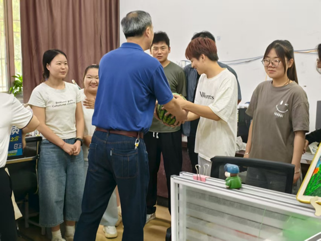 在研究生工作室,公司党委书记江本武对留校研究生投身科研项目的钻研精神给予高度肯定,现场为同学们送上西瓜、饮料等消暑物资。他叮嘱同学们在努力学习的同时,务必遵守公司暑期留校管理规定,强化安全防范意识,注意交通、人身及财产安全。他表示,公司公司将全力为留校员工提供良好的学习和生活保障。