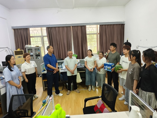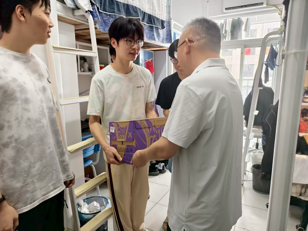 本网讯(通讯员 王祥祥)为切实做好暑期留校员工的管理与服务,助力暑期留校员工备考、科研,7 月 17 日下午,beats365官方网站班子成员一行走访研究生实验室、员工宿舍,开展了暑期慰问活动。