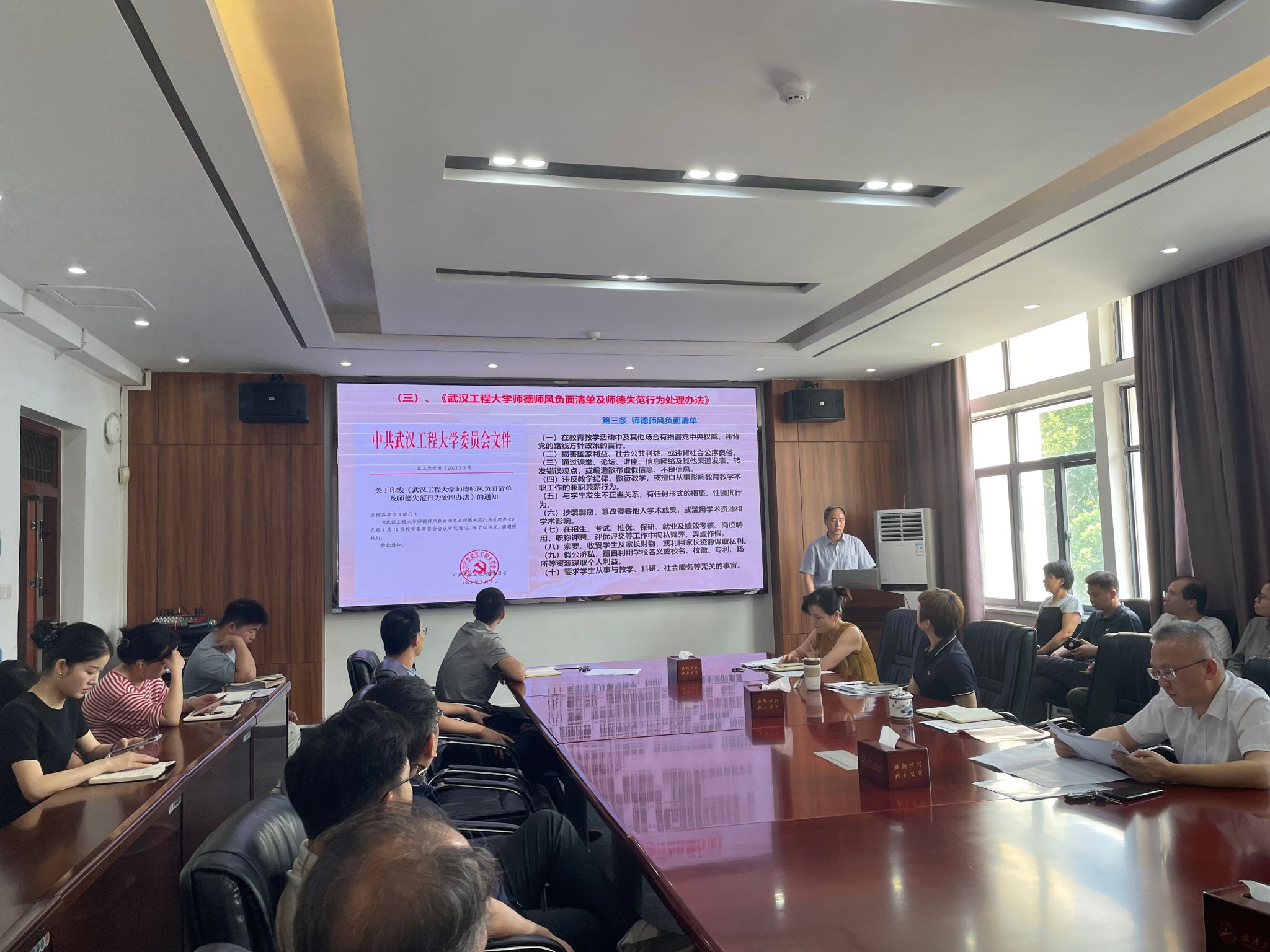 江本武书记结合公司2025年关于师德师风主题宣传教育月活动的安排,与全体教师一起进行了集中专题学习。通过回顾《新时代高校教师职业行为十项准则》《高等公司教师职业道德规范》《beats365师德师风负面清单及师德失范行为处理办法》等,让老师们知道哪些事情可以做,哪些事情不能做。同时通过教育部公开曝光的第十三批7起违反教师职业行为十项准则典型案例,时刻提醒老师做到知敬畏、存戒惧、守底线,在日常教书育人的过程中牢记新时代教师的荣誉与使命,警钟长鸣。