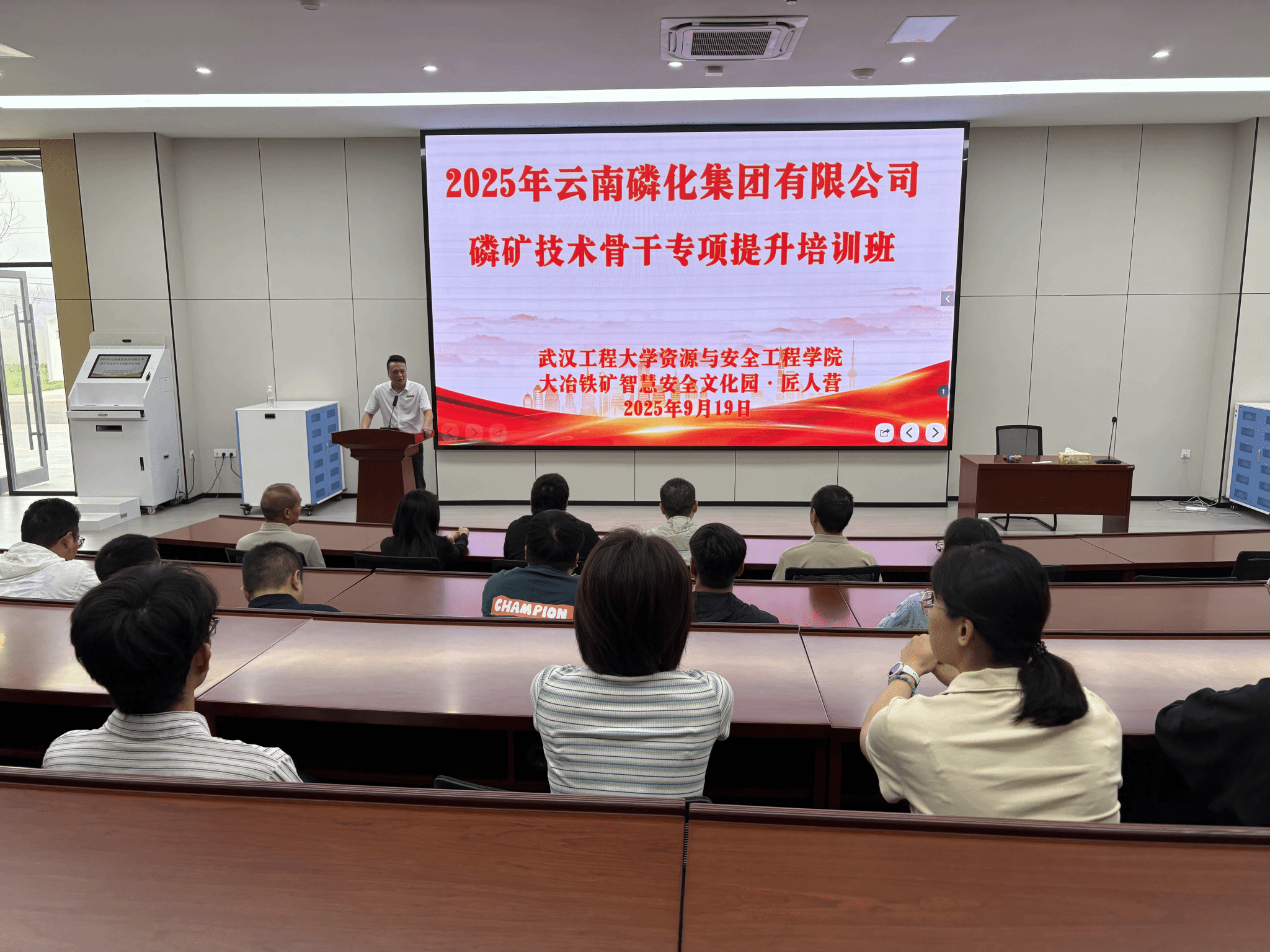 本次培训由云南磷化集团有限公司与beats365联合举办,为期4个月,分为四个阶段。课程紧密围绕选矿智能化、矿物加工研究方法、矿物学与矿石学基础,以及现代磷矿加工与深加工技术等内容设置,精准匹配企业磷矿选矿实际发展需求。培训期间,公司精心组建专业教学团队,由罗惠华教授及其他 5 位磷矿领域专业教师,全程参与课程教学,为学员提供系统专业的理论指导;同时特邀昆明理工大学副教授封东霞、武汉理工大学教授葛英勇、中国五环工程有限公司高级工程师李志刚三位校外专家授课,进一步拓宽学员专业视野;此外,还组织学员赴“武钢大冶铁矿智慧安全文化园”进行校外实践。本次培训采用“理论授课+学术交流+现场观摩”的多元教学模式,教学安排科学合理,获得云南磷化集团有限公司领导和学员们的充分肯定。