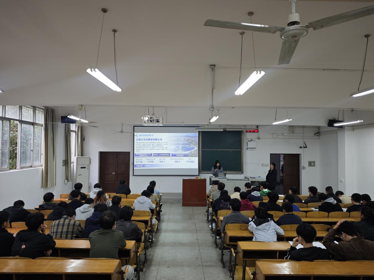 讲座中,宋岩结合个人学业与职业发展经历,系统介绍了云天化集团的岗位需求、准入门槛、职业发展路径及未来成长空间,引导同学们在专业背景下开展职业自我认知与科学规划,深化了员工对行业前景和个人定位的理解。