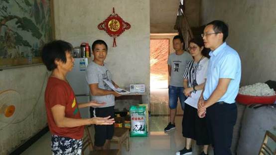 随后,在驻村扶贫队袁队长、队员胡光明老师及村干部陪同下,大家冒着酷暑高温走村入户,挨个走访结对贫困户。两公司老师通过深入交谈,详细了解了结对帮扶对象的家庭现状、主要经济来源、目前急需解决的困难等第一手资料。根据不同贫困户面临的问题,大家分析目前市场热门产业以及帮扶对象家庭的实际条件和资源,对家庭今后创收提出了合理化建议。在走访中,两公司还为贫困户送去米、油、牛奶等生活物资。