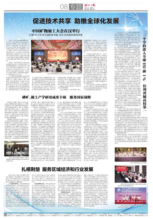 赵海山出席会议时强调,充分发挥湖北科教及人才优势,推进矿物加工学科交叉融合,促进矿物加工行业创新发展。我省矿产资源丰富,累计发现矿种150种,已查明资源储量的矿种91种,主要矿产资源具有品位高、分布相对集中、易于开采等特点。目前,湖北建立了冶金、磷、盐、石油、建材等产业集群,培育了一批实力较强的矿物加工企业。随着现代浮、选、冶及人工智能技术的推广运用,湖北的矿物加工工业迎来了转型升级机遇期。诚请院士专家为湖北经济社会发展把脉问诊、献计献策。