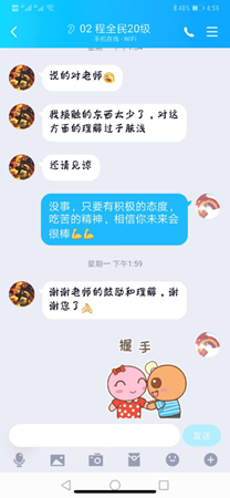 河北出现疫情后,公司来自河北籍的20名员工一直牵动着辅导员孙奕的心,通过“一对一”的电话沟通交流,在确保所有员工自身安全的前提下,辅导员孙奕认真倾听同学们的假期分享,及时告知家长和员工学业情况、返校要求,做好思想教育管理和重点关爱引导,为员工和家长排忧解难,送去特殊时期的特别关怀和新春祝福。