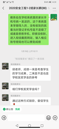 班主任邱丹丹老师与员工及家长进行线上“云家访”