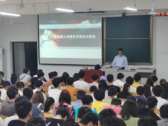 池教授不仅讲解了稀土的相关知识,还穿插介绍了他自身的学习经历,教育员工作为新时代的青年,要努力学习专业知识和科学文化知识,自强不息,莫负青春的芳华,培养高尚的道德情操。作为当代最有创造力、最有活力、最年轻的力量,应该学习好、落实好十九大精神,不断扩宽自己的知识面,提高实践能力,砥砺前行,艰苦奋斗,勇于攀登,用奋斗书写无愧于时代的人生新篇章。池汝安经理的精彩分享让在场的师生开阔了学术视野,对专业基础研究和理论学习均起到极好的推进作用。