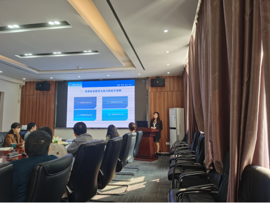 董婷博士以《如何提升思想政治工作的亲和力》为题,从思想政治教育亲和力的科学内涵、基本特征和提升策略三个方面进行阐述,分享了个人在思政课堂教学过程中的经历和感想,对在实际工作中如何构建协同育人机制,引导员工进一步坚定中国特色社会主义道路自信、理论自信、制度自信、文化自信,坚定共产主义理想信念提供了理论基础。