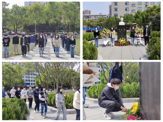 一朵鲜花祭哀思,一份深情奠英雄。员工代表登上纪念碑基座,为英雄敬献花篮,全体师生一一敬献鲜花并瞻仰雕像。