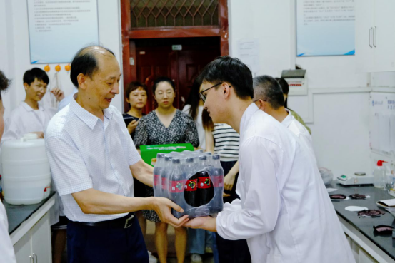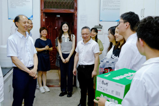 在公司大厅,喻发全为留校员工赠送了消暑饮料。他充分肯定了留校员工认真备考考研、学科竞赛和刻苦科研的进取精神,叮嘱大家在做好学习科研的同时要严格遵守公司疫情防控常态化管理及其他规定,强化安全意识,注意卫生防疫、交通、生命财产等安全。他表示,公司和公司将为留校员工做好条件保障。