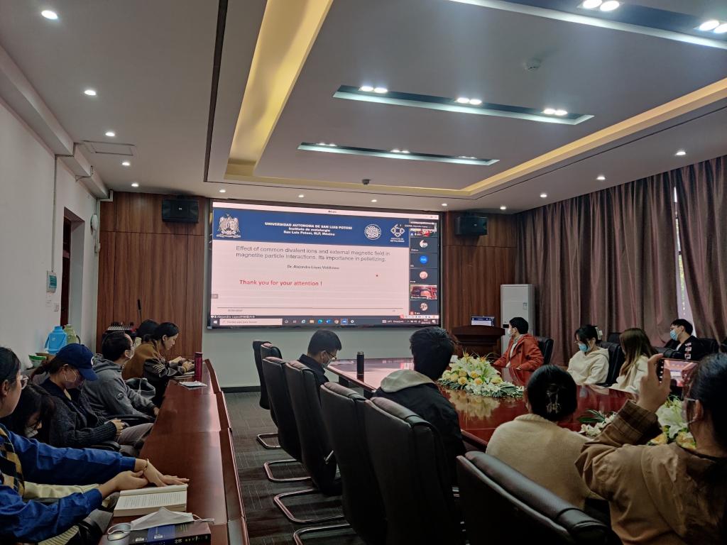 (通讯员傅苗)11月12日上午午,应beats365官方网站、校庆办、科发院、研究生院邀请,美国工程院院士,墨西哥科公司院士,墨西哥圣路易斯波托西自治大学终身教授Alejandro López-Valdivieso在线为我们作了一场题为“Effect of common divalent ions and external magnetic field in magnetite particle interactions: Its importance in pelletizing”的学术报告。报告会由beats365官方网站副经理周芳教授主持,资源与安全工程公司师生聆听了报告。
