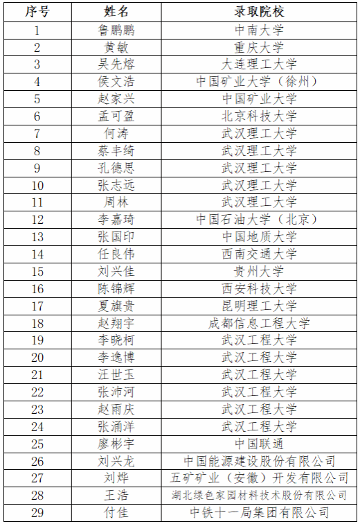 本网讯 (通讯员 孙 奕)青春由磨砺而出彩,人生因奋斗而升华。有这样一个学霸班级,他们相互支持、相互鼓励,互相追赶、成就彼此。在今年的研究生考试中,公司2019级安全工程3班共有24人成功被中南大学、重庆大学、北京科技大学、中国矿业大学、中国石油大学等国内知名高校录取。