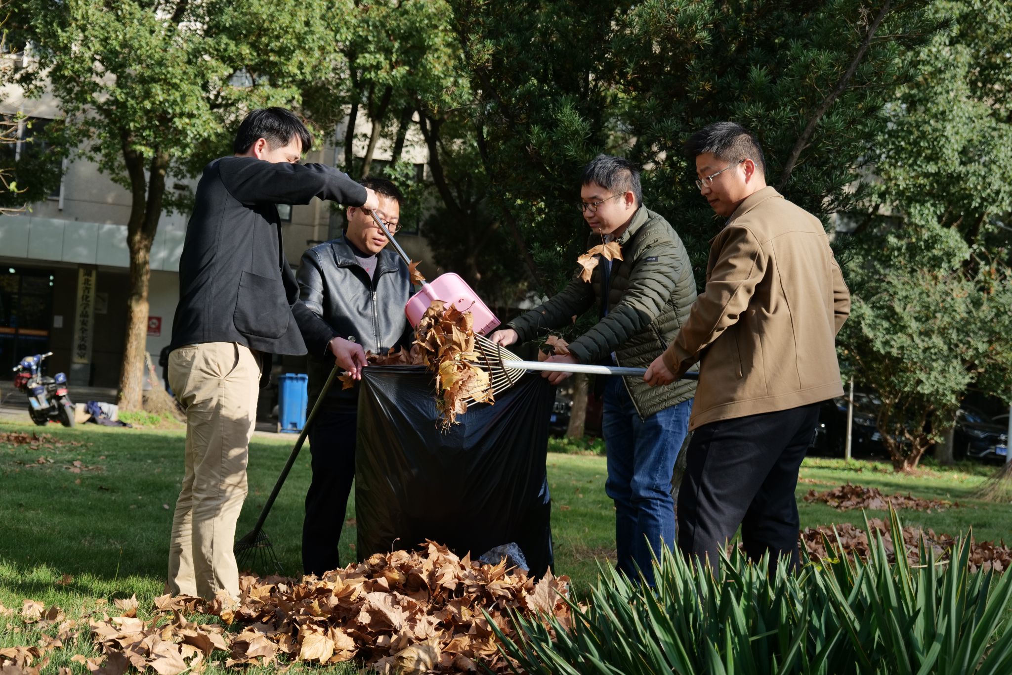 党员志愿者们充分发挥不怕脏、不怕累的精神,分工配合对公司劳动责任区域内进行清扫,手拿草耙子、垃圾袋,对许志伟广场的落叶枯枝、纸屑烟头等垃圾进行清扫装袋。