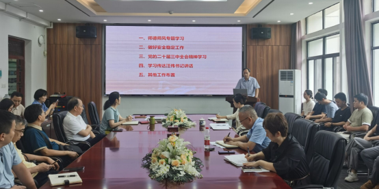 会上,公司党委书记江本武带领全体教职工学习了 “公司党委三届九次全体(扩大)会议暨2024年秋季学期中层干部会议精神”,重点学习了党的二十届三中全会精神,传达了汪伟书记在中层干部会上的讲话,并部署了近期有关师德师风专题工作及安全稳定等工作任务。