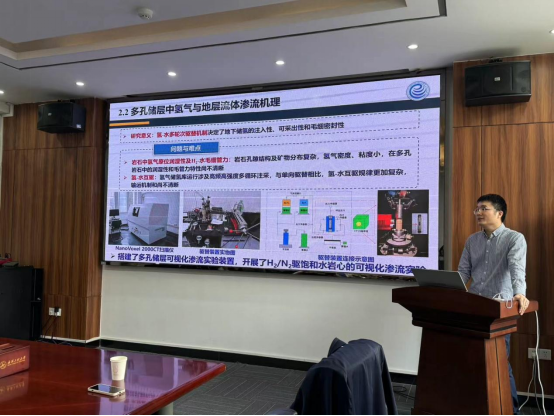 宋睿研究员首先为大家介绍了目前地储氢方面的研究背景与意义,以及当前行业面临的一些挑战,然后从致密岩石中H2扩散特性、多孔储层中氢气与地层流体渗流机理,孔隙尺度H2生物化学反应-输运模拟和层状盐岩储气库密封性影响因素分析等方面为大家介绍其团队在地下储氢研究与氢气渗流-扩散机理方面的研究。宋睿研究员以深入浅出的方式引导大家思考科学研究方法和如何开展有效的科研创新活动。