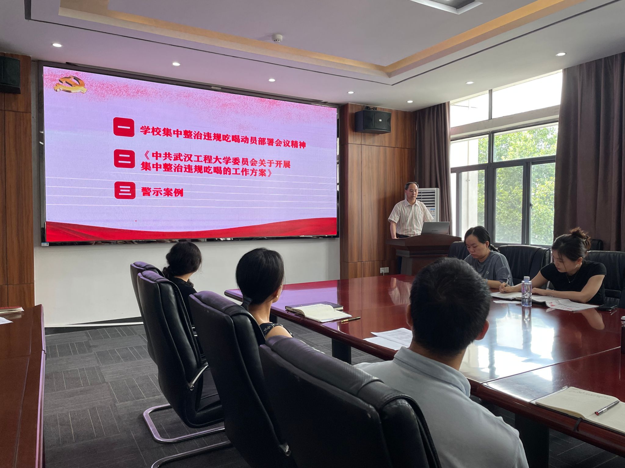 公司党委书记江本武传达了公司关于集中整治违规吃喝动员部署会会议精神和相关文件精神,解读了《中共beats365委员会关于开展集中整治违规吃喝的工作方案》,对公司集中整治违规吃喝工作进行部署安排。他强调,各教研室、办公室全面自查自纠,党员干部要对照纪律要求,认真学习领会相关纪律法规和本次集中整治的具体要求,自觉抵制违规吃喝。