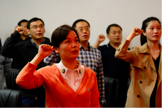 会上,公司与会全体教职工和党员举行了庄严的宣誓仪式,由公司副经理周芳带领全体教师重温入职誓词,公司党务干事王耀眉带领全体党员教师重温入党誓词。