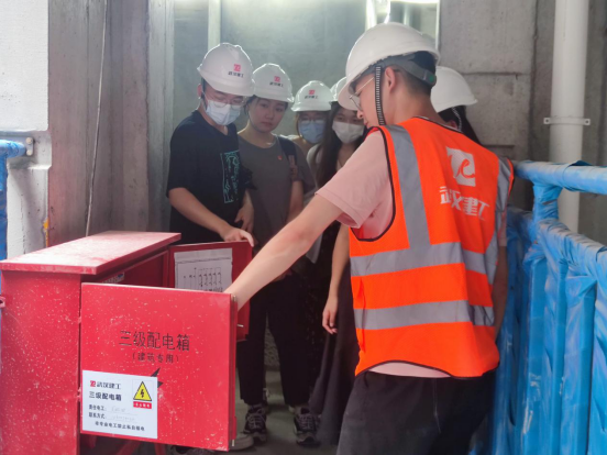 在武汉建工(集团)有限公司项目管理六公司安全负责人范金桥的带领下,公司党员师生一行参观了施工一线,全面了解施工安全防护措施及安全生产建设知识。
