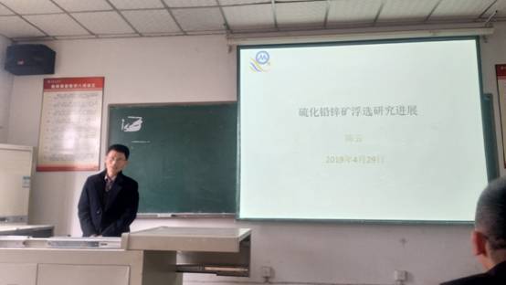 陈云教授首先为同学介绍了自己多年来国内外的求学经历与研究经历,随后结合自己回国后的研究项目为同学们作了“硫化铅锌矿选矿进展”的学术报告。在报告过程中陈云教授深入浅出的给同学们介绍了传统的硫化铅锌矿选矿工艺,以及目前国内外在此领域的研究进展。随后为同学详细介绍了自己研发的一种不需要高碱抑制黄铁矿的新药剂新工艺,即无石灰硫化铅锌矿的浮选,以及配套的选矿废水深度处理工艺。报告内容新颖,开拓了员工的知识面。