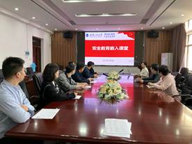 周芳经理助理汇报了“安全教育嵌入课堂”制度的建设进展,演示了工作小组编写的国家安全观、意识形态安全、公共安全应急知识、网络安全、财产安全和物品保管、人身安全、实验室安全、心理健康等方面的安全教育讲义。
