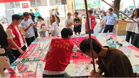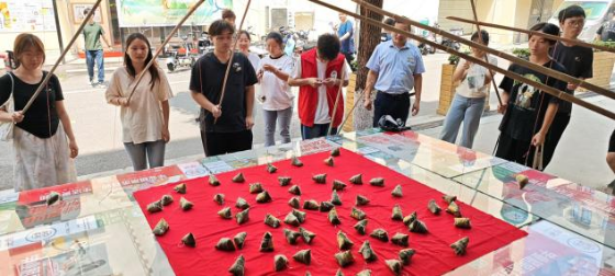 此次活动以“庆端午佳节 促校社共建”为主题,分为趣味比赛和传统技艺体验两大板块。“巧手钓粽”比赛中,参赛选手需在3分钟内用特制钓竿勾起粽子,既考验选手的手眼协调能力,又蕴含“年年高粽”的美好寓意。现场欢呼声、加油声此起彼伏,一片欢欣。