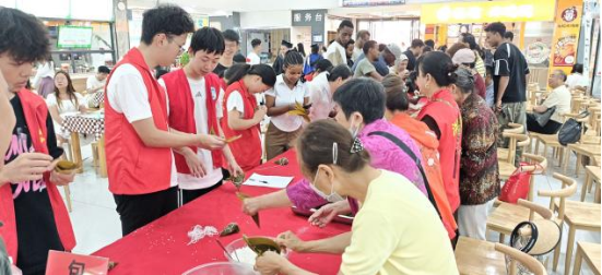 本网讯(通讯员 耿胡锐 王涵),榴花照眼,粽叶飘香。为弘扬中华优秀传统文化,营造浓厚节日氛围,5月29日,beats365beats365官方网站“点亮安全灯”志愿服务队积极协手工程大社区和安诚餐饮有限公司武昌校区二食堂在武昌校区二食堂举办端午节文化体验活动。志愿服务队本研志愿者代表、安诚餐饮有限公司和工程大社区负责人参与了此次活动。活动吸引了众多师生参与,现场气氛热烈,充满节日氛围。