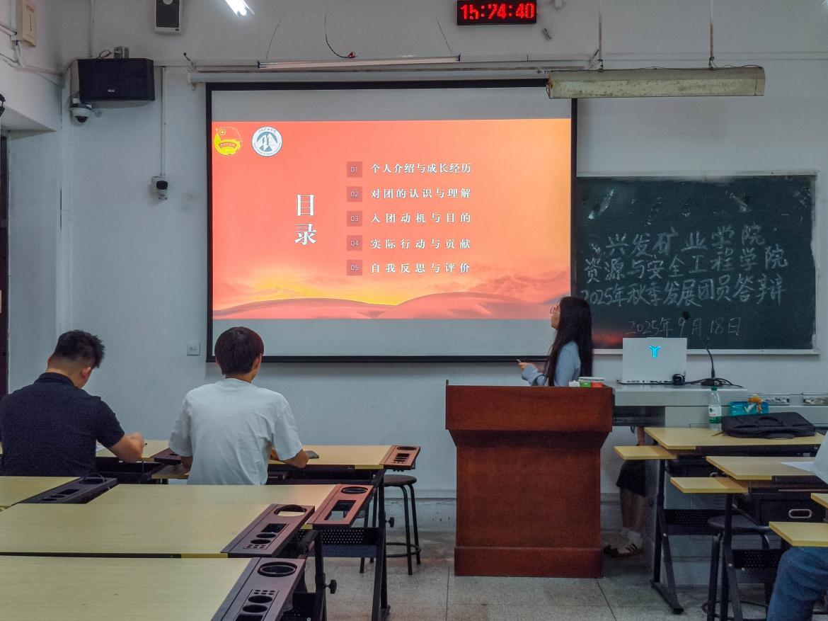 经自主申请,共有11位同学参与本次答辩,现场以PPT的形式进行展示,主要从个人对中国共青团的认知、政治理论素养、未来发展方向以及自身对团组织的向往等几个方面汇报。
