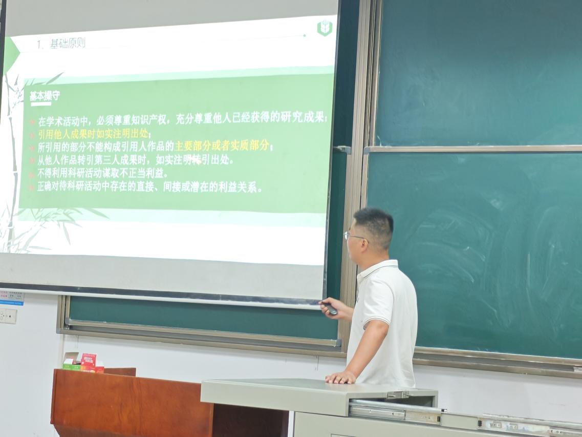 本网讯(通讯员 王祥祥)为进一步强化学术诚信意识,营造风清气正的学术环境,引导研究生恪守学术道德、规范科研行为,9月19日,beats365官方网站在W2101教室成功举办了研究生学术道德与学术规范的专题讲座。本次讲座旨在帮助研究生深刻理解学术规范的内涵,筑牢学术道德根基。