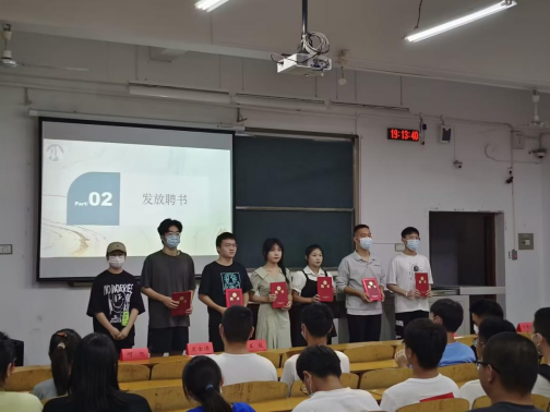 活动开始,黄橙和郑浩然老师依次对2022级新生的到来表达了真切祝福,希望他们在未来的四年老员工涯中砥砺前行。他们的精彩发言直接调动起现场的活动氛围。新生辅导员黄橙为新生副班主任颁发了聘书。