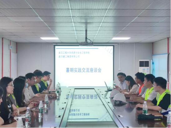 参观结束后,武汉建工集团股份有限公司项目总负责人李征宇参与了暑期实践交流座谈会。座谈会上,实践团成员一一分享了今日的参观心得,针对企业和安全工程专业实践提出了若干问题,李征宇分别做了一一解答。公司团委负责老师郑浩然也就公司与武汉建工集团在实习实践、人才培养等方面进行了深入的交流。