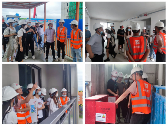 在武汉建工集团股份有限公司项目安全负责人、2015届员工范金桥的带领下,参观了项目施工地的户内户外施工安全防护措施,现场演示了各种安全设备的使用,并向在场的团队成员讲解了相关安全的原理及重要性。