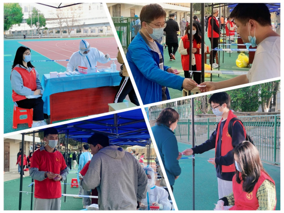 第一次参加线下的核酸检测志愿服务,早上还不到七点的时候到操场,但人就已经在排队,开始准备参加核酸检测,公司员工以及社区的居民都特别积极的参加核酸检测,医护人员在准备好之后就立马开始检测,我们志愿者也开始工作。在这个过程中,大家都积极配合防疫措施,整个过程井然有序,高效快捷,在我工作的两个半小时里就有六七百人做完核酸检测。我的工作是在同学们做完核酸检测后发核酸检测证明的那个小卡片,比较简单,但看到同学们积极参加检测,志愿者们在现场努力帮忙,医护人员认真工作,心里想起一句的话——此生无悔入华夏,来世还来种花家。