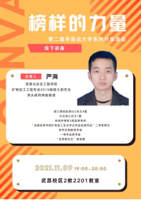 本次分享会邀请到公司2021年保研到中南大学的2018级矿物加工工程专业本科生关智文、本科生国家奖学金获得者2018级安全工程3班黄敏、研究生国家奖学金获得者2019级矿物加工工程专业硕士研究生严海共3名同学作为分享嘉宾。