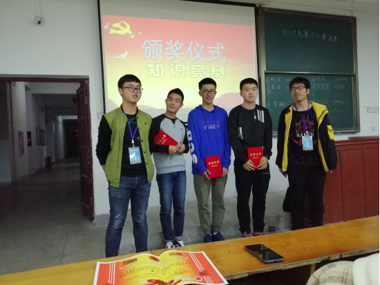 11月8日,知识竞赛团体赛如约而至,选手们竞争激烈,经历了必答题,抢答题和风险题三大环节,期间还进行了观众互动,选手们层层晋级,获得了不同的分数,在比赛过程中,各位选手充分的表现了的自己才能,你争我夺,互不相让,真的是狭路相逢勇者胜。最后由礼仪颁发证书和奖状,并由第一名发表了获奖感言。