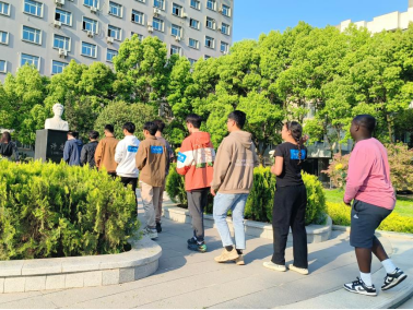 中外师生学子集聚许志伟纪念广场,怀着最崇高的敬意,深切缅怀烈士许志伟。活动中,辅导员郑浩然、志愿者齐智越分别用中英文向在场师生介绍了许志伟的生平事迹。