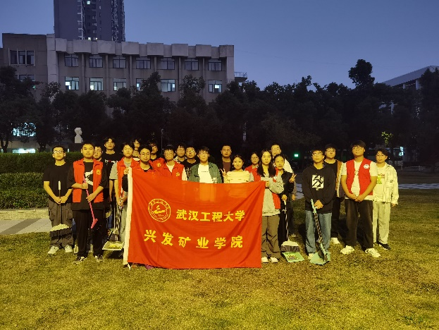 培训班的学员们手持清洁工具,怀着崇敬的心情准时来到广场。在正式清扫前,大家围坐在一起,重温许志伟学长的英雄事迹。他的事迹如同一座不朽的精神丰碑,永远矗立在师生心间。
