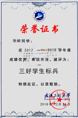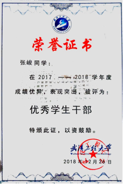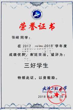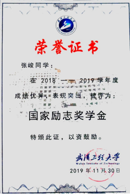 Ⅰ.在校期间两次获得国家励志奖学金。(2018-2019)