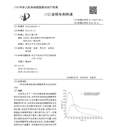 Ⅱ.以第三作者参与《一种消除湿法磷酸萃取反应泡沫的方法》发明专利合著,目前该专利已公布。
