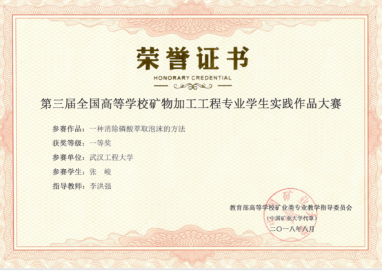 Ⅰ.参加第三届全国矿物加工作品实践大赛获国家一等奖。