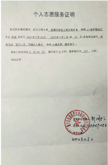 Ⅲ.值新冠肺炎之际,作为一名志愿者参与乡镇府的执勤工作。(2020.2)