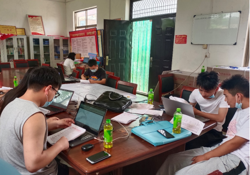 常燕斌(左一)参与信息录入工作