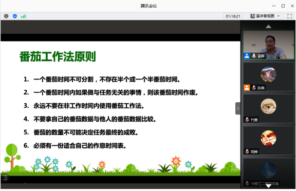 讲座中,雷辉针对疫情防控常态化背景下返校员工可能出现的焦虑、恐慌等心理问题,围绕如何控制情绪的应对策略、番茄TODO app工作法原则、冥想和腹式呼吸法等心理适应技巧展开阐述,引导返校员工在科学防控疫情中成长。