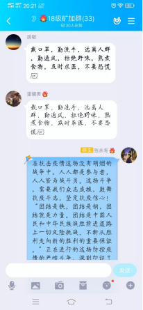 在班会上,各年级同学认真学习了《高等公司新型冠状病毒肺炎防控指南》和《新型冠状病毒肺炎健康教育手册》,通过深入学习,同学们对新型冠状病毒有了充分的了解,对它的传播途径和传播方式有了充分的掌握。此后,同学们还认真了解了如何区别流感和新型冠状病毒。对采取隔离的原因以及措施、外出时需要注意的事项、对于无症状感染者的关注和预防,防止同学疏忽大意,进行了科普学习。同时在班会上积极了解每位同学所在地的疫情情况,及时完成心理疏导。同时也提醒同学们积极做好复学的准备。