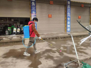 夏旗贵在小百户镇主要道路商铺、道路进行消毒