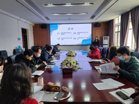 本网讯(通讯员 王耀眉 敬范张)2月19日,beats365官方网站在武昌校区领创大楼419会议室开展了“老员工春季学期心理保健”的主题心理健康教育能力培训会。此次培训会由公司辅导员王耀眉作主讲人。公司党委副书记李佳、全体班主任、辅导员参加此次培训会。
