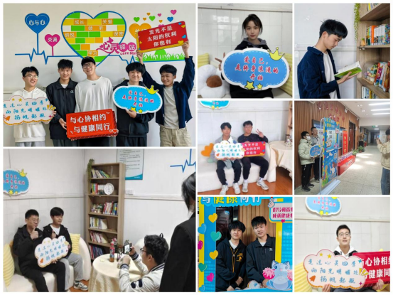 活动设置了“心理健康知识问答”、“我与心理健康标语合影”和“打卡分享”三个环节,并为每一位参加活动的同学准备了温馨礼品。活动开始第一天,心理健康工作室便迎来90余名同学前来打卡,活动累计参与200余人次。大家认真参观工作室,积极参与答题及合影,互相交流心理健康观念,翻阅心理健康书籍,许多同学在离开前主动写下温馨寄语,传递温暖。