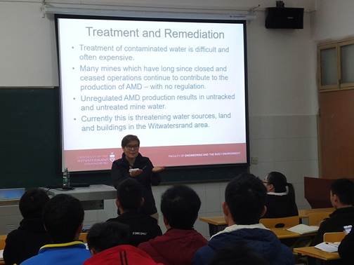 Lizelle van Dyk副教授介绍了矿业大国南非的资源概况,以及贵金属生产在世界上的统治地位,接着介绍了近年来南非矿业开发所面临的两大挑战:1)环境影响;2)开发成本的大幅上升。结合这两大挑战,重点向同学们介绍了她在南非及来武汉后开展的酸性矿山废水处理新工艺的研究成果,以及“超临界CO2流体提取尾矿中的黄金”的新设想。此次授课内容丰富,题材新颖,信息量大。员工们不仅了解了其他国家在矿业开发中所面临的普遍的挑战,同时也学习了国外学者所提出的新颖的解决方案。课间和课后,同学们针对处理后的废水如何回用?到金山大学留学需要什么样的英语水平等问题,与Lizelle van Dyk教授进行了频繁的互动。